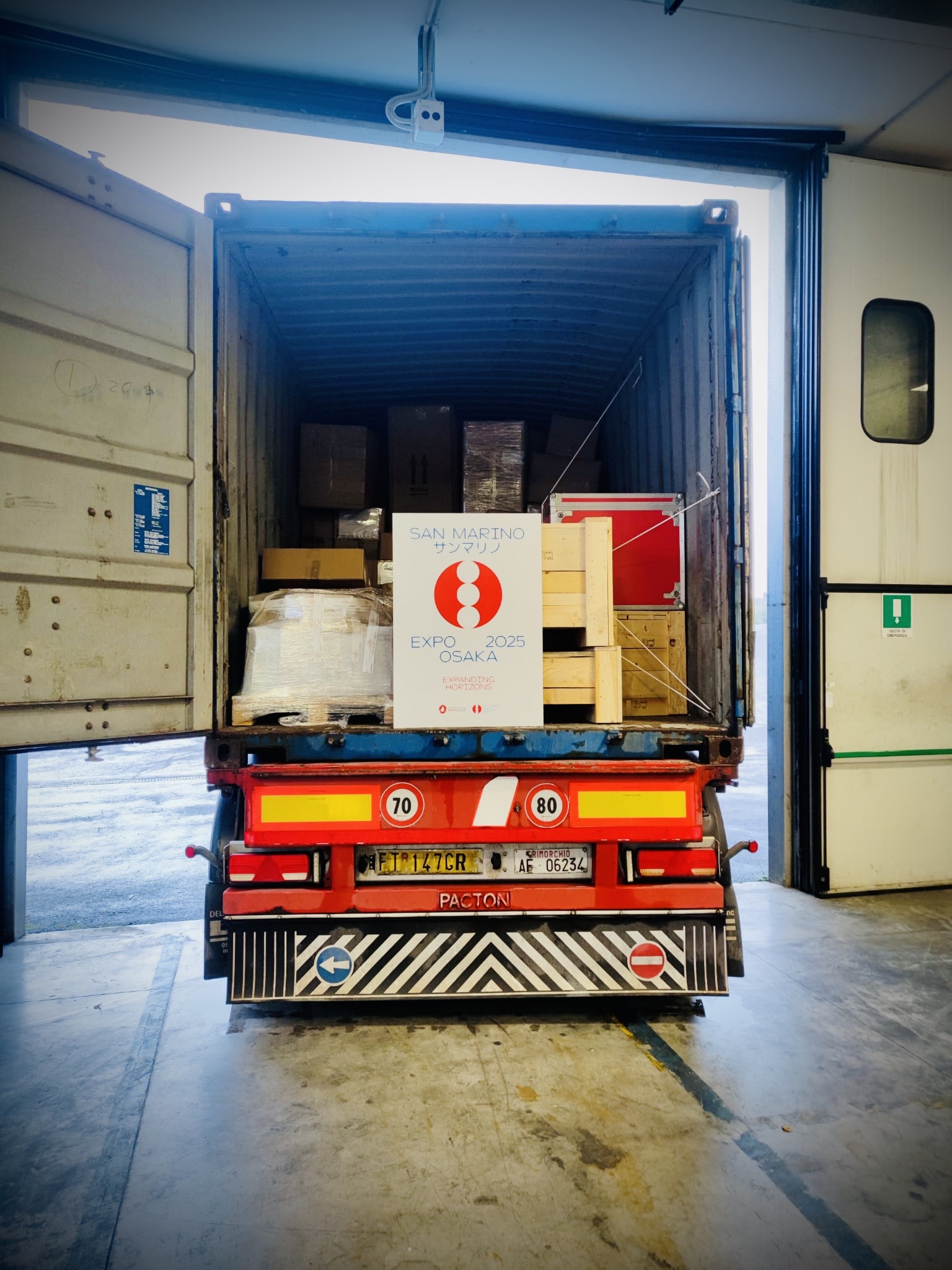 Aboard a truck bound for the Port of Ravenna, the container will be loaded and depart next Monday, November 18, with arrival expected in about two and a half months at the Port of Osaka. From there, transportation of the goods to the exhibition site.